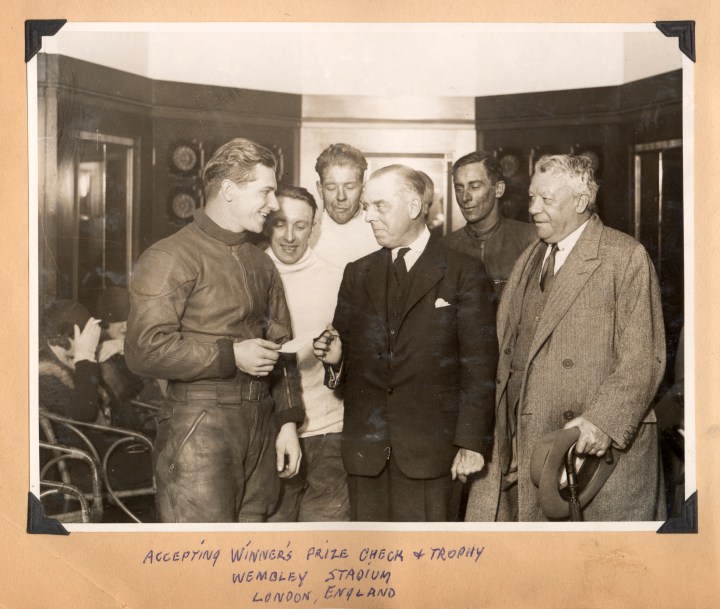 Ray accepting the Star Rider’s winning check at Wembley Stadium (1931)